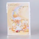 - Μπεζ κάρτα με δυο βρέφοι, μπιμπερο και ουράνιο τόξο
